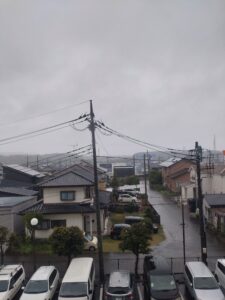 当日の朝です。雨です。