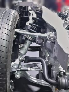足廻りは、アルミ鋳造のダブルウィッシュボーン式を採用してます。
