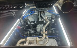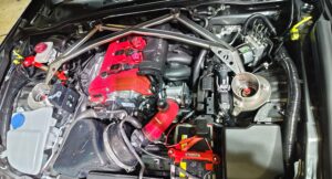 赤いヘッドカバーも目立っていますが、こちらはファインチューニングリビルドエンジン。