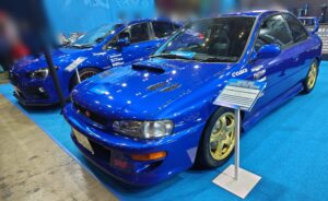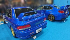 展示車はスバル車でWRブルー一色です。