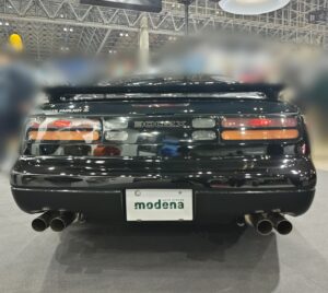 装着された展示車は平成元年に登場したモデナにあう時代の名車です。
